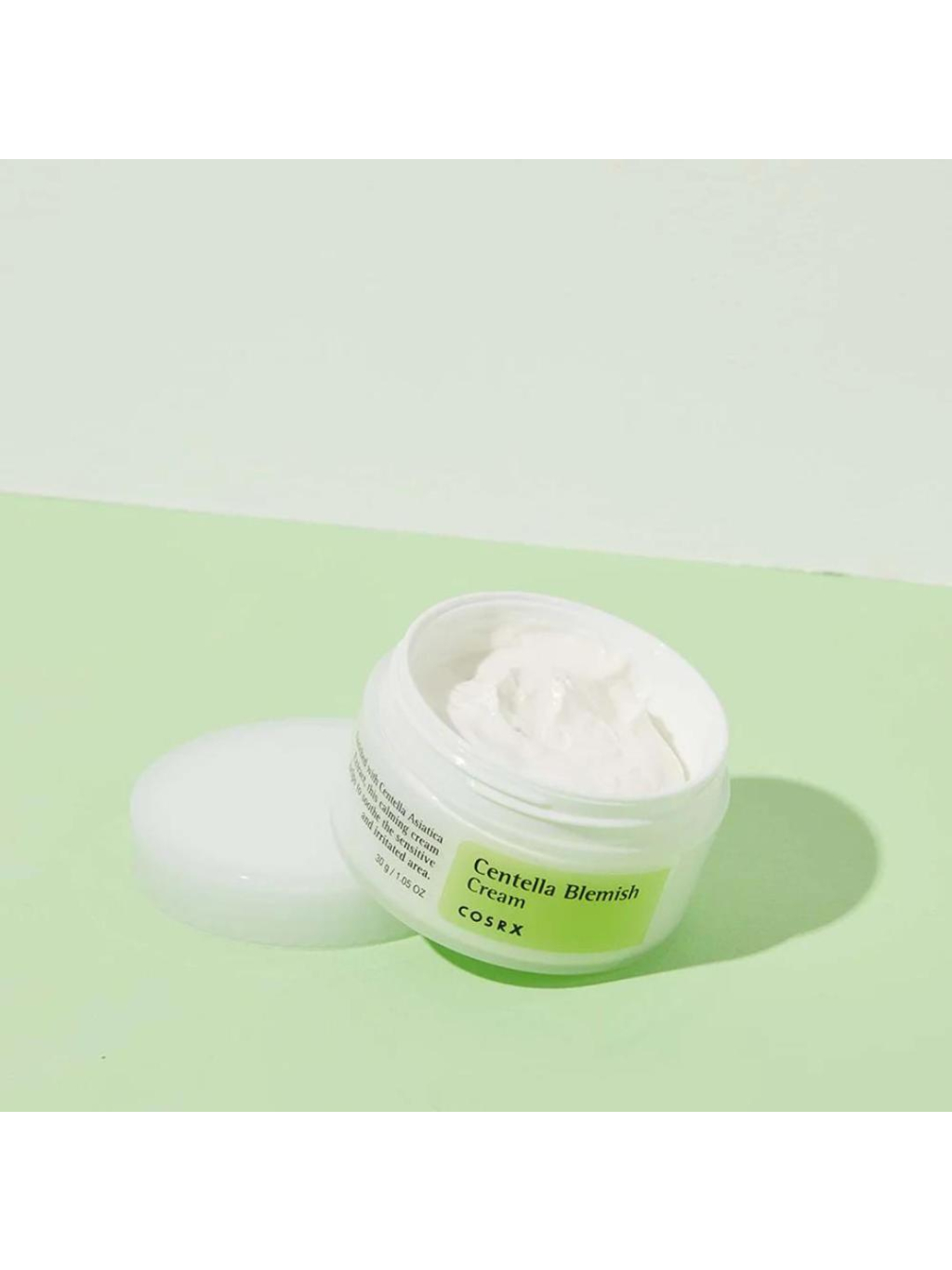 COSRX Centella Blemish Cream je intenzívny krém určený na liečbu a upokojenie podráždenej a aknóznej pleti. Tento krém je obohatený o 50.79% výťažok z Centella Asiatica a 7% oxidu zinočnatého, poskytujú rýchlu úľavu od zápalov a začervenania a zároveň podporuje regeneráciu pleti.