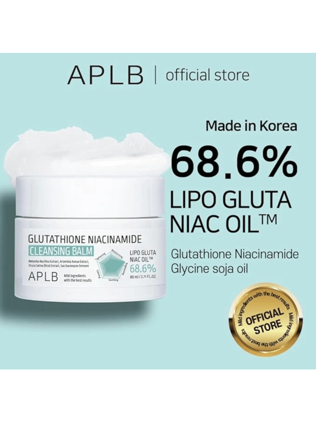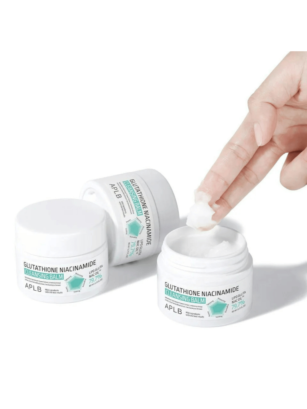 APLB Glutathione Niacinamide Cleansing Balm je luxusný čistiaci balzam, ktorý spája silu **glutathionu** a **niacínamidu** na viditeľné rozjasnenie pleti. Balzam sa pri kontakte s pokožkou mení z pevnej formy na olej, ktorý efektívne rozpúšťa make-up, SPF a nečistoty, pričom pokožka zostáva hydratovaná, jemná a svižne čistá.