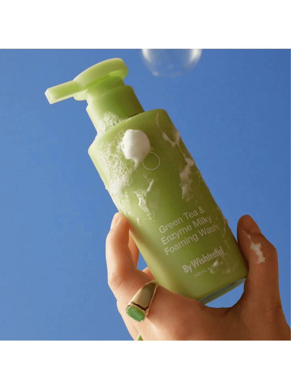 Milky Foaming Wash je tvoja nová ranná rutina pokožky – jemná, výživná pena so zeleným čajom a ovocnými enzýmami, ktorá hĺbkovo čistí bez narušenia ochrannej bariéry. BY WISHTREND Green Tea & Enzyme Milky Foaming Wash ti prinesie úľavu, hydratáciu a sviežosť – bez podráždenia.