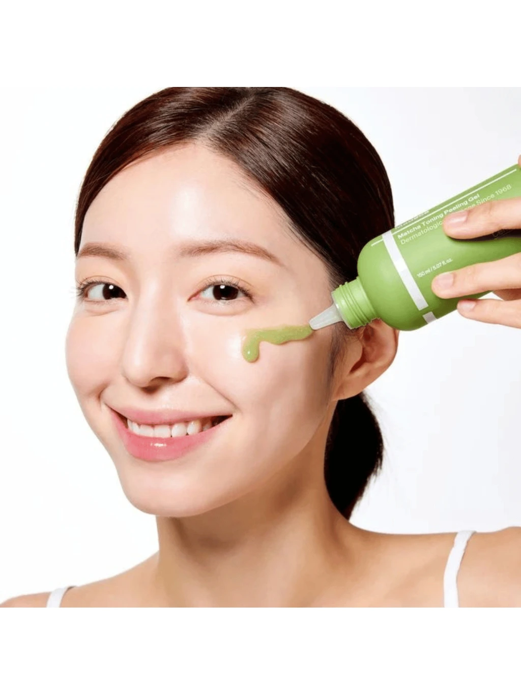 Jemný peelingový gél s matchou, uhlíkom a cica efektom, ktorý pri masáži vytvorí gommage rolky a zanechá pleť hladšiu, jasnejšiu a príjemne čistú.