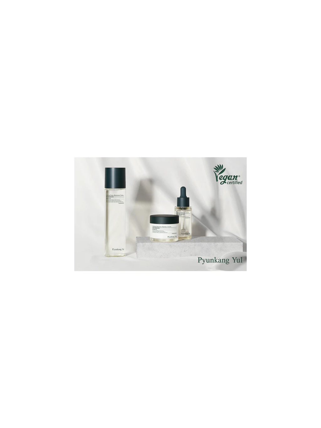 Predstav si pokoj pleti, keď ju niečo podráždi – a ty siahneš po istote. PYUNKANG YUL Calming Line Gift Set je trojica, ktorú používaš ráno aj večer bez rozmýšľania: Calming Deep Moisture Toner 150 ml, Calming Moisture Serum 30 ml a Calming Moisture Barrier Cream 50 ml. Toner jemne vyhladí textúru vďaka Gluconolactone (PHA) a extraktu z Salix Alba, zároveň doplní vlhkosť glycerínom, betainom a panthenolom. Sérum stavia na Centella Asiatica komplexe (asiaticoside, asiatic acid, madecassoside, madecassic acid) a tea tree, pridáva peptidy Acetyl Hexapeptide-8 a Palmitoyl Tripeptide-5 pre pružnejší vzhľad a Ceramide NP pre posilnenie bariéry. Krém uzamkne hydratáciu vďaka ceramidu, skvalánu, bambuckému maslu a olivovému oleju, no zároveň je príjemne nemastný vďaka ľahkým emolientom. Všetky tri produkty obsahujú hyaluronátový komplex v rôznych formách (Sodium Hyaluronate, Hydrolyzed Hyaluronic Acid, Hydroxypropyltrimonium Hyaluronate, Sodium Hyaluronate Crosspolymer, Sodium Acetylated Hyaluronate), takže pleť pôsobí napitá, pružná a hladká. Ak ťa trápi začervenanie, citlivosť, drobné pupienky či oslabená bariéra, tento set je tvoj “calming” rituál – jednoduchý, funkčný a krásne vyvážený. PYUNKANG YUL - Calming Line Gift Set je ideálny aj ako darček pre každú, ktorá miluje čistú, minimalistickú K-beauty rutinu.