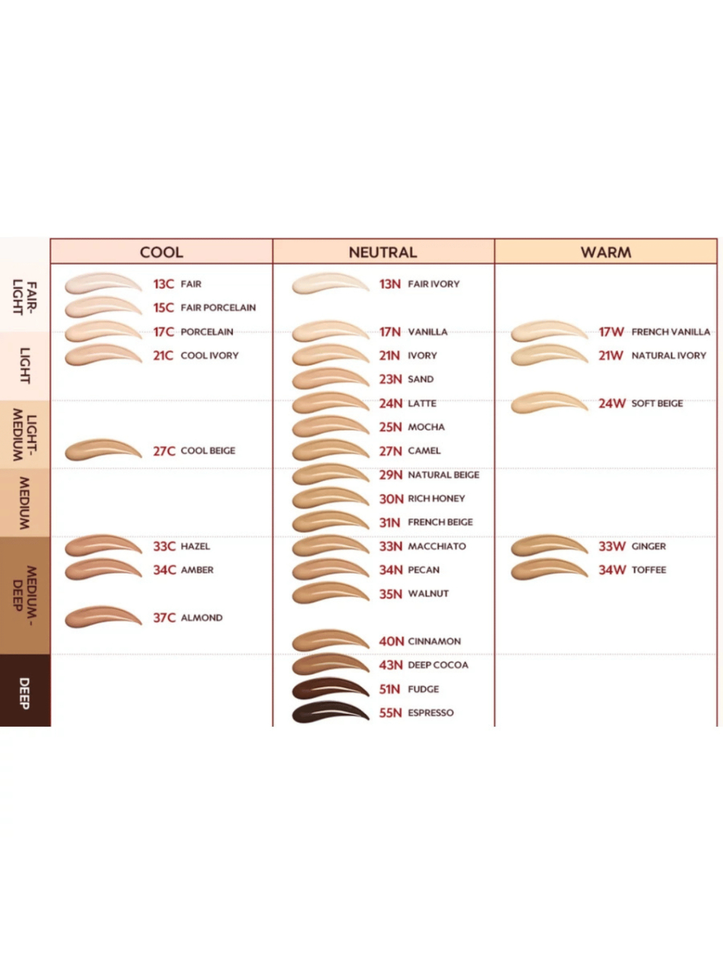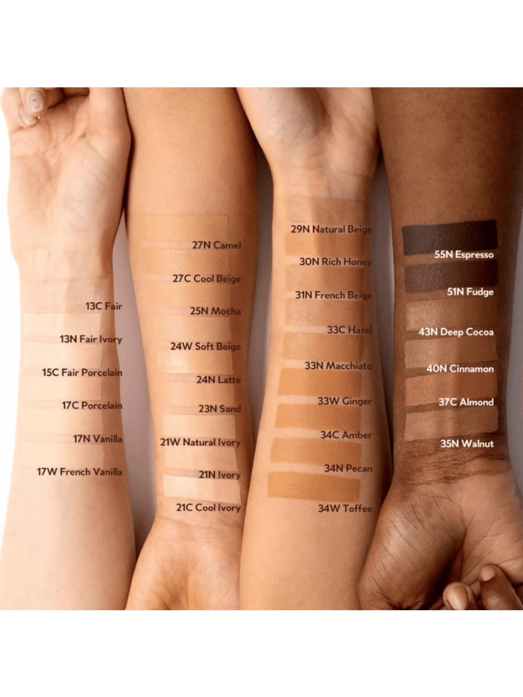 Lehký, krémovo-saténový film, ktorý sa spojí s pleťou do zamatovo hladkého, semi-matného závoja bez púdrového nánosu.