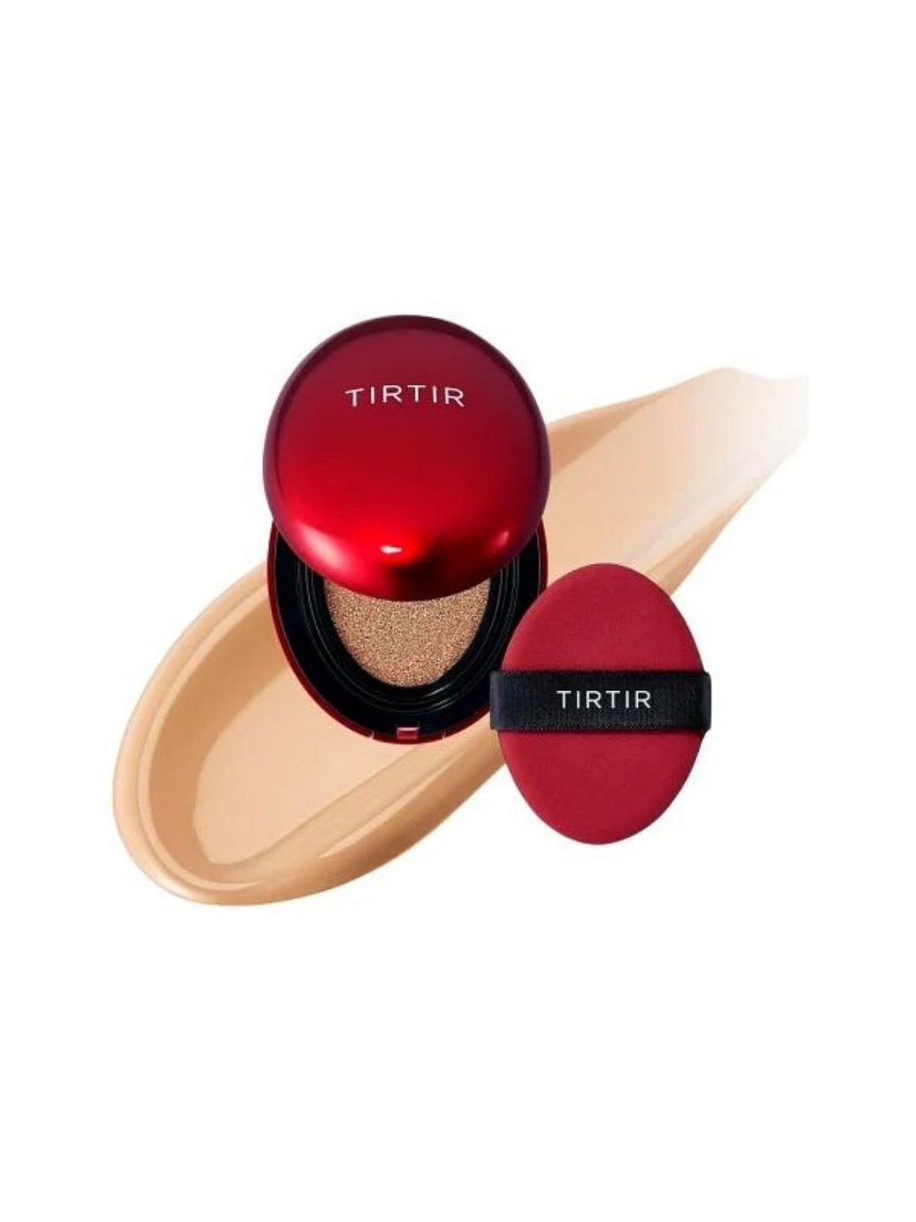 Dosiahnite bezchybný a prirodzene žiarivý vzhľad pleti s TIRTIR Mask Fit Red Cushion Dlhotrvajúci make-up na tvár v odtieni 27C COOL BEIGE. Ponúka vysoké krytie, dlhodobú výdrž a ľahkú textúru. Tento cushion make-up dokonale zjednocuje tón pleti, zakrýva nedokonalosti a poskytuje jemný matný finiš bez lesku. Odtieň 27C COOL BEIGE je ideálny pre stredne opálenú pleť s jemne teplým podtónom. Zloženie je obohatené o niacínnamid, ktorý pomáha rozjasniť pokožku, a adenozín, ktorý podporuje vyhladzovanie jemných vrások a regeneráciu pleti. Vďaka extraktu z ružičkového kelu, propolisu a bieleho lekna udržiava pleť hydratovanú a vyživenú. Ochranný faktor SPF 40 PA ++ poskytuje ochranu pred škodlivým UV žiarením. Make-up, ktorý získal vyše 30 ocenení, poskytuje krytie škvŕn a začervenaní, a to až na 72 hodín. Kvety ibišteka sudánskeho, propolis a astaxantín vyživujú pleť a zabezpečujú, že make-up ostane na svojom mieste. Je odolný voči potu a zároveň šetrný k pokožke. HLAVNÉ ZLOŽKY