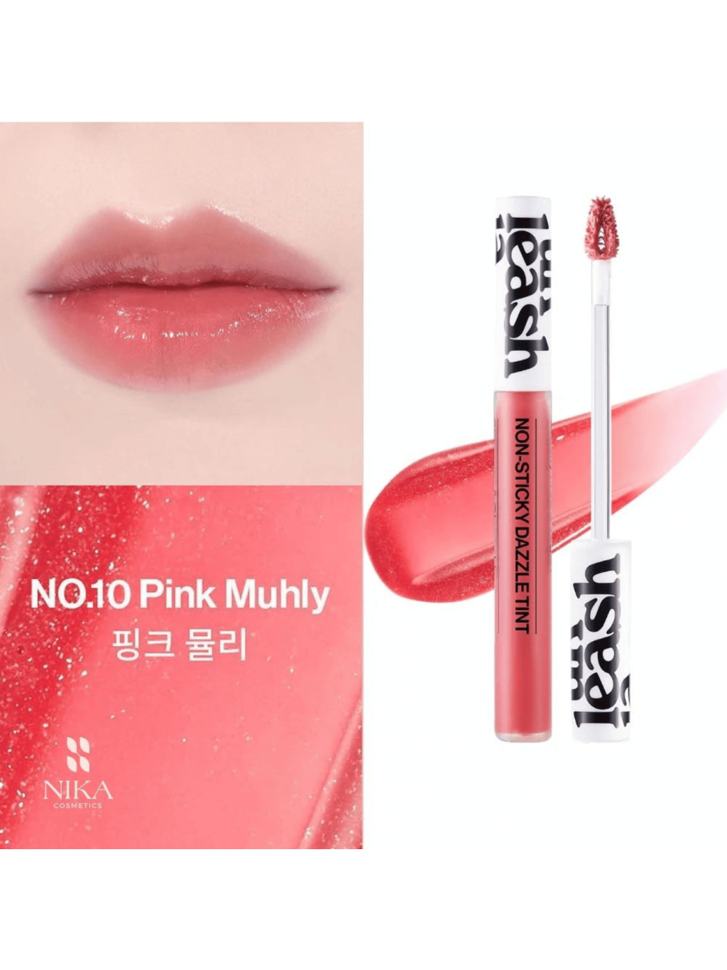 UNLEASHIA - Non-Sticky Dazzle Tint No.10 Pink Muhly - Lesklý tint na pery s kyselinou hyalurónovou a squalanom 4g