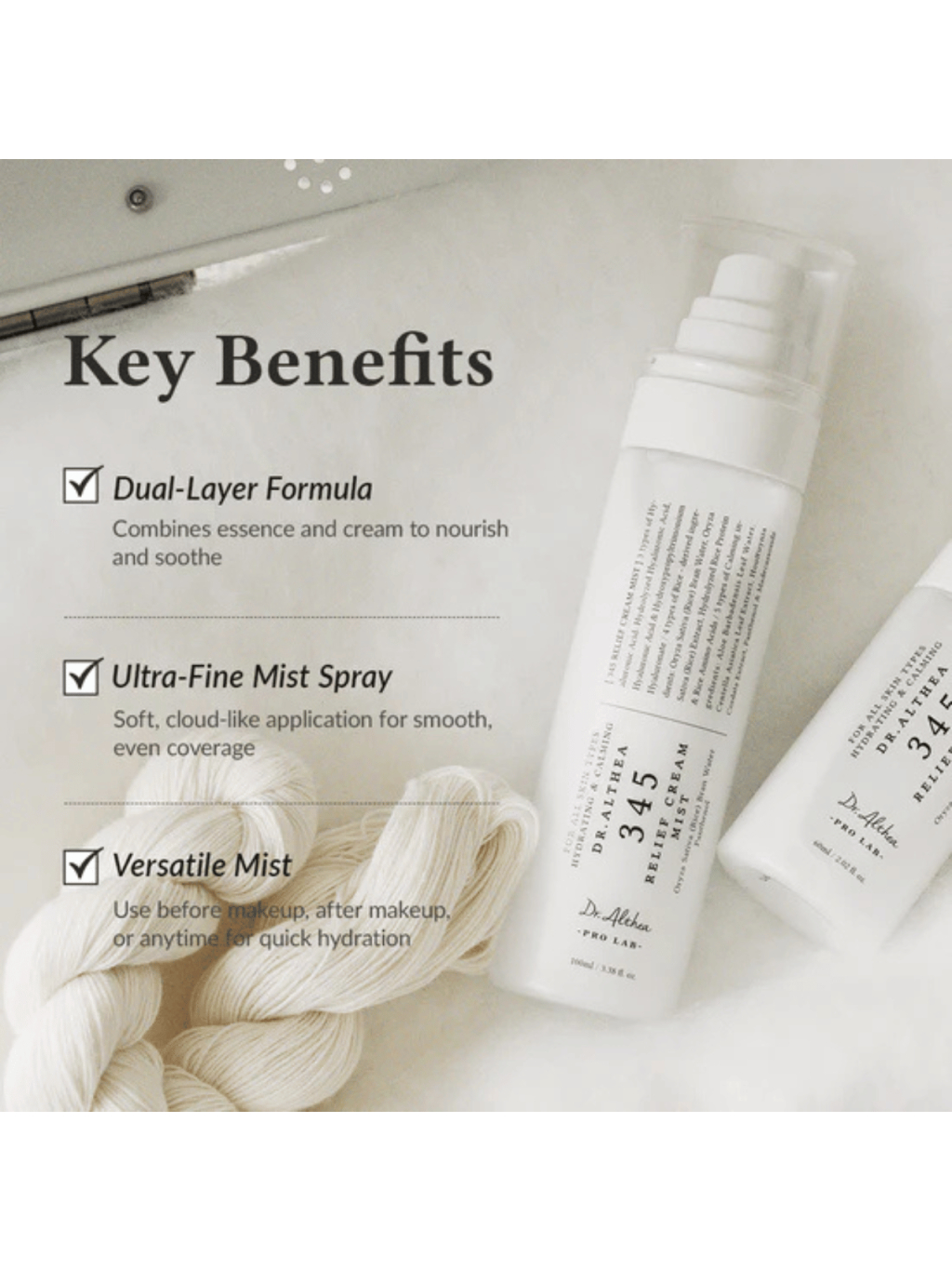 ⭐️Pro tip: 345 Relief Cream Mist používaj po toneri a sére - ráno ju nastriekaj ako hydratačný medzikrok pred SPF alebo ľahkým mejkapom, večer ako posledný krok na uzamknutie hydratácie.