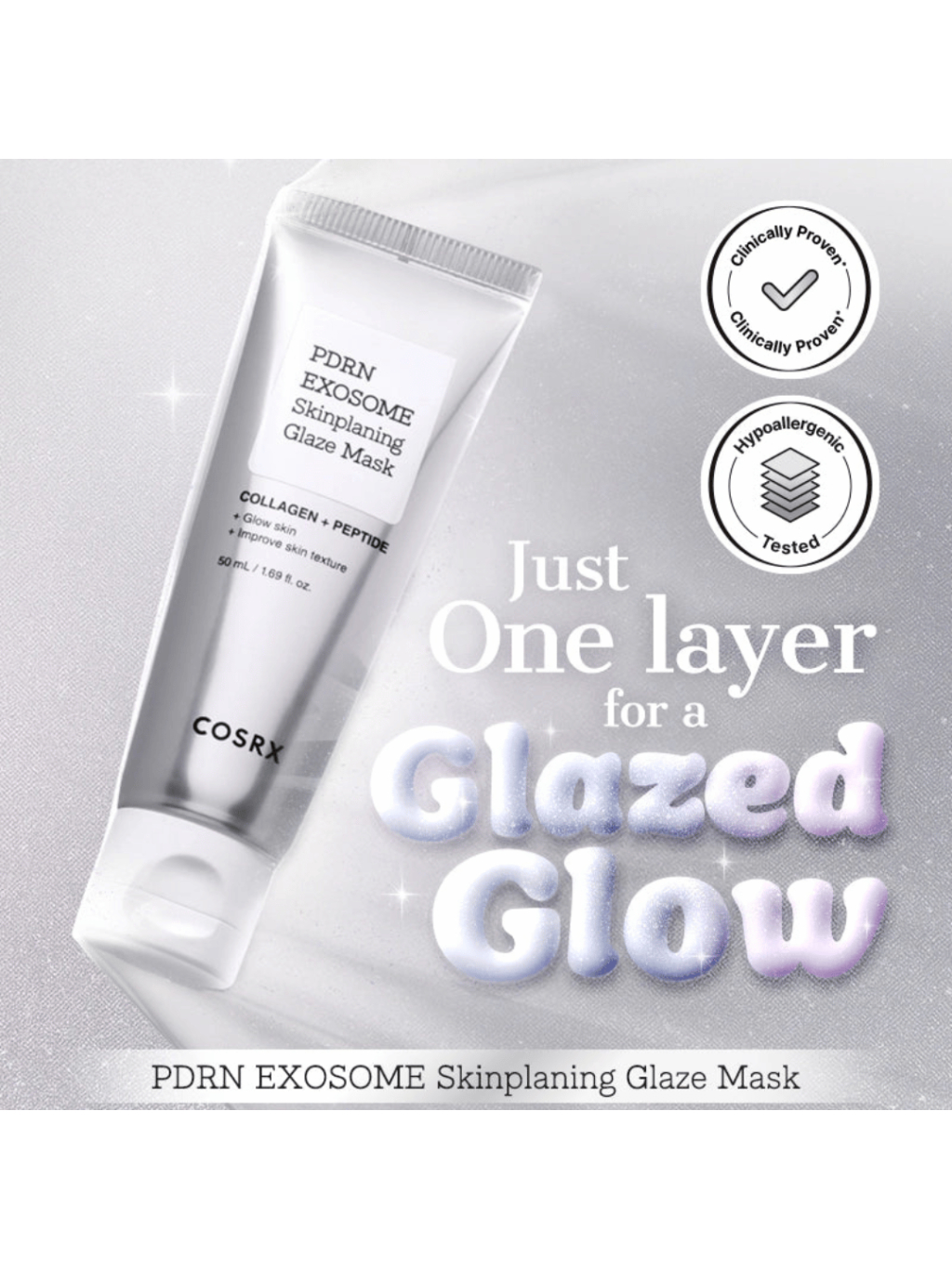 Sklenený, hladký glow bez námahy. COSRX PDRN EXOSOME SKINPLANING GLAZE MASK s niacínamidom, PDRN a exozómami vyhladí textúru, rozjasní a viditeľne zjemní póry už po pár minútach.