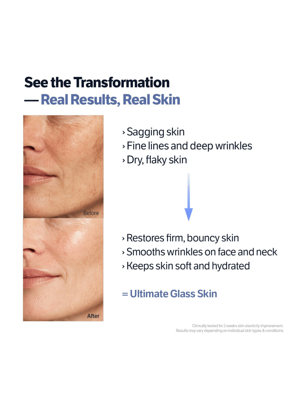 | Zloženie: | Water, Glycerin, Methylpropanediol, Dipropylene Glycol, 1,2-Hexanediol, Niacinamide, Butylene Glycol, Caprylic/Capric Triglyceride, Ethylhexyl Palmitate, Carbomer, Arginine, Cetearyl Alcohol, Hydrogenated Polyisobutene, Propanediol, Cetearyl Olivate, Glyceryl Stearate, Dimethicone, Sorbitan Olivate, C14-22 Alcohols, Sorbitan Stearate, Hydrolyzed Sponge, Collagen Extract, Simmondsia Chinensis (Jojoba) Seed Oil, Adenosine, C12-20 Alkyl Glucoside, Sodium Hyaluronate, Panthenol, Trehalose, Rosmarinus Officinalis (Rosemary) Leaf Extract, Olea Europaea (Olive) Fruit Oil, Beta-Carotene (CI 75130), Hydrolyzed Collagen, Hydroxypropyltrimonium Hyaluronate, Retinol, Polyglyceryl-10 Laurate, HDI/Trimethylol Hexyllactone Crosspolymer, Polyvinyl Alcohol, Hydrolyzed Hyaluronic Acid, Sodium Acetylated Hyaluronate, Tocopherol, Collagen, Collagen Amino Acids, Soluble Collagen, Soluble Collagen Crosspolymer, Zinc Hydrolyzed Collagen, Ethylhexylglycerin, Hyaluronic Acid, Tripeptide-1, Caprylyl Glycol, Sodium Hyaluronate Crosspolymer, Hydrolyzed Sodium Hyaluronate, Xanthan Gum, Phenylpropanol, Potassium Hyaluronate, Copper Tripeptide-1, Palmitoyl Pentapeptide-4, Palmitoyl Tripeptide-1, Hexapeptide-9, Hexapeptide-11, Acetyl Tetrapeptide-2, Acetyl Tetrapeptide-5, Palmitoyl Tripeptide-5 |