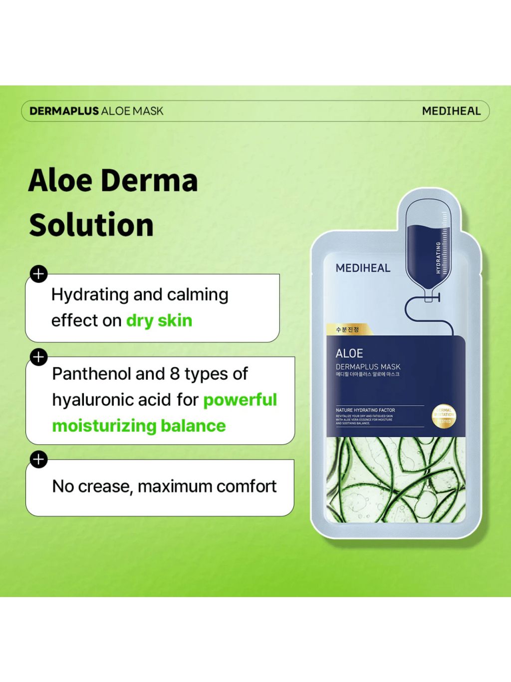 MEDIHEAL - Dermaplus Aloe Mask - Upokojujúca maska s aloe, ectoinom a 8 druhmi hyalurónu 22ml