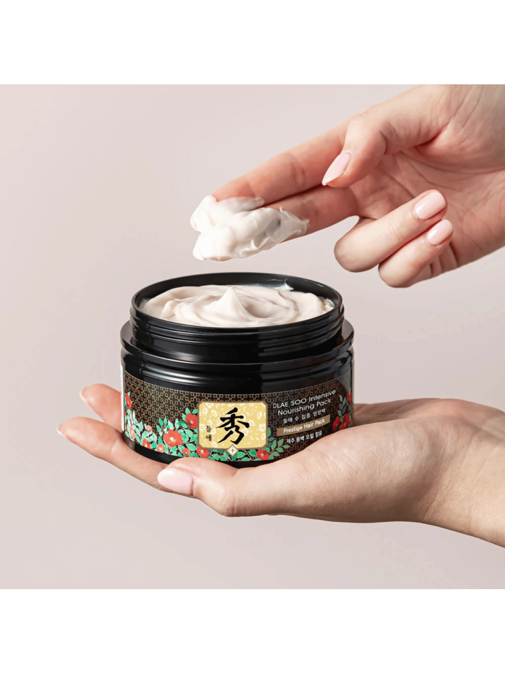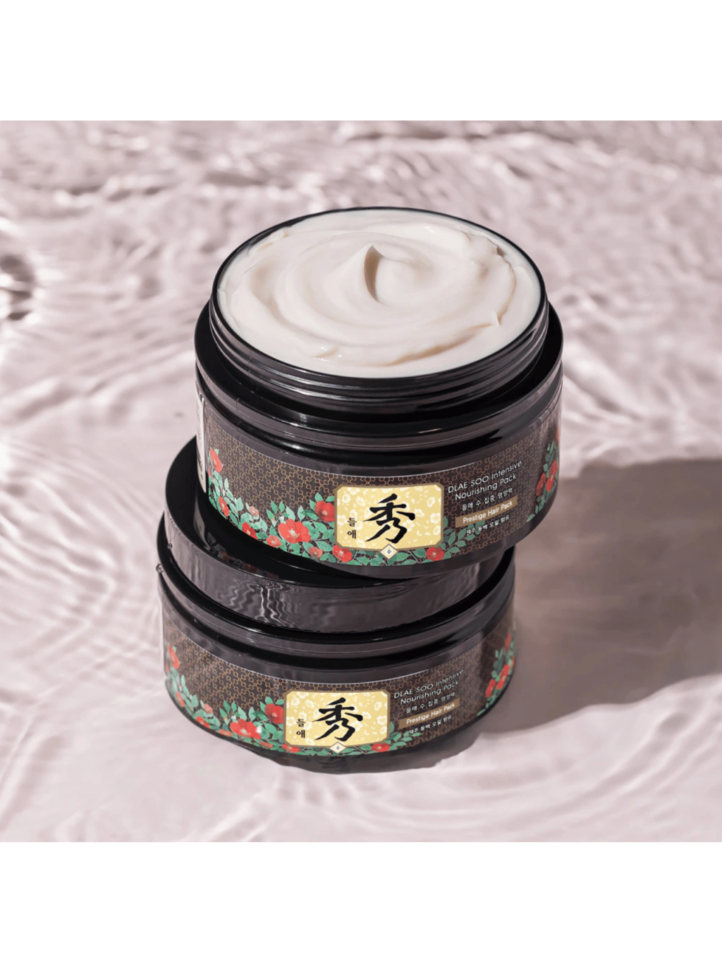 Dlae Soo Intensive Nourishing Pack je ten typ masky, po ktorej si povieš: “Áno, toto moje vlasy presne potrebovali.” Bohatá krémová formula s Camellia Japonica Seed Oil (olej z kamélie), avokádovým a arganovým olejom a komplexom keratínov (keratín, hydrolyzovaný keratín, oxidovaný keratín) vypĺňa vlasové vlákno, viditeľne uhladzuje povrch a zanecháva ho hebké, poddajné a žiarivo lesklé. Bylinné extrakty ako ženšen (Panax Ginseng), chryzantéma, rozmarín a šalvia spolu s silkworm cocoon extract a aloe ferox pomáhajú chrániť dĺžky a zároveň zlepšujú komfort pokožky hlavy. Vďaka ľahkému zloženiu s kondicionačnými zložkami (napr. dimethicone, stearamidopropyl dimethylamine) sa maska rovnomerne rozotiera, nezlepuje pramene a nezaťažuje. Pri pravidelnom používaní prispieva k menšiemu krepovateniu, lepšej pružnosti a k menšej lámavosti končekov. Ak hľadáš rýchly spa efekt doma a miluješ účinok “good hair day”, Dlae Soo Intensive Nourishing Pack bude tvoj nový must-have pre výživu a zrkadlový lesk.