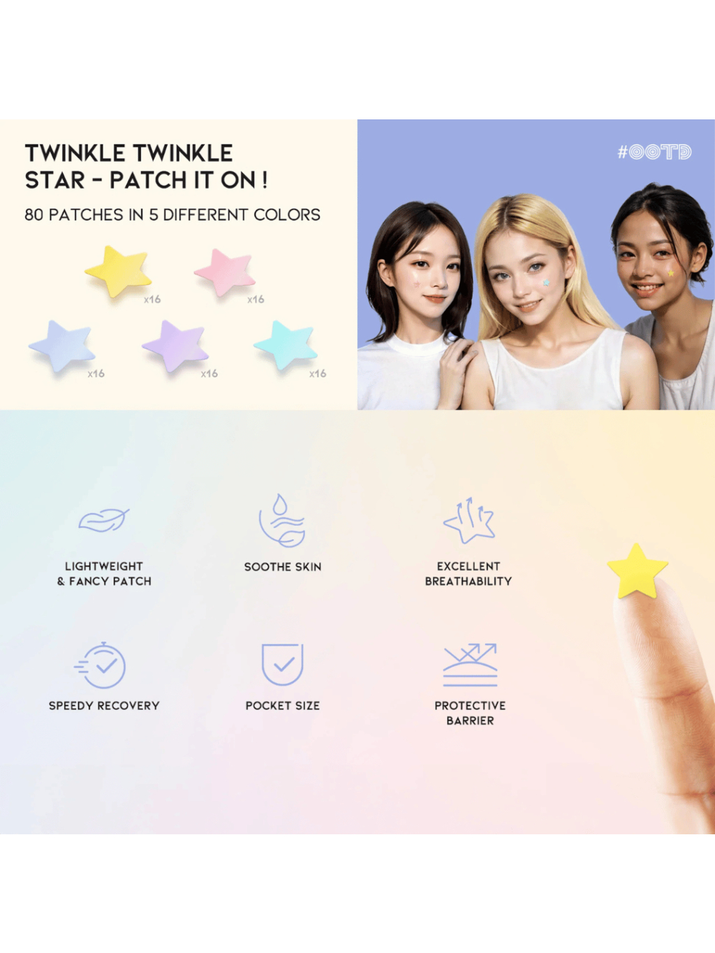 Ultra tenké akné náplasti OOTD Star Spot Patch urýchľujú hojenie a chránia pokožku pred vonkajšími vplyvmi – bez viditeľnosti na pleti.