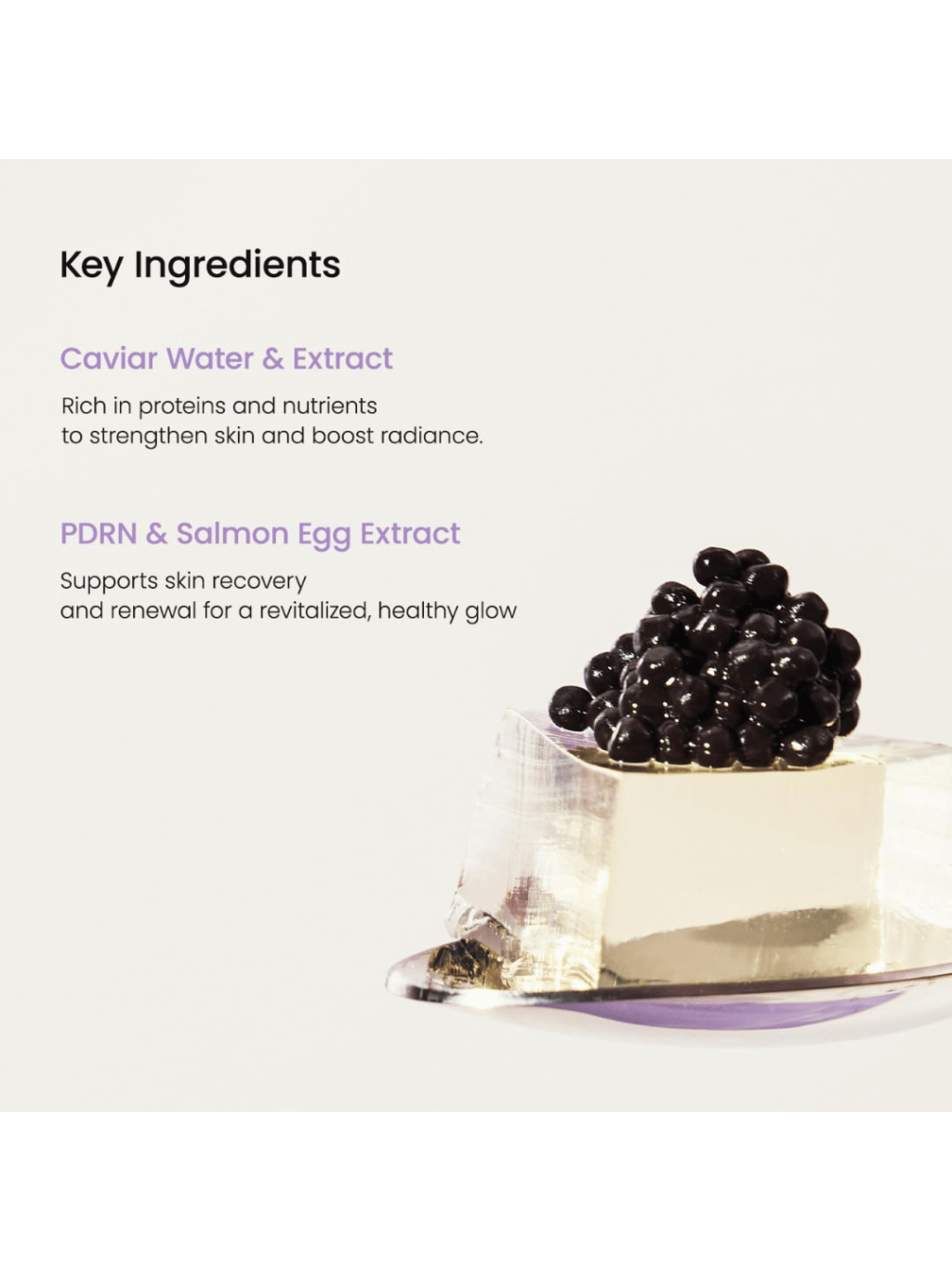 - ✨ Caviar Water + Caviar Extract - bohaté na proteíny a minerály, podporujú pružnosť a žiarivosť