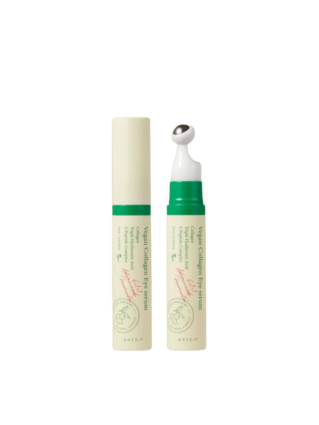 Predstav si, že ráno spravíš pár plynulých ťahov chladivým aplikátorom a očné okolie okamžite pôsobí sviežejšie, vypnutejšie a pripravené na deň. AXIS-Y Vegan Collagen Eye Serum je očné sérum, ktoré spája vegánsky kolagén s 5 peptidmi, trojicou kyseliny hyalurónovej a rozjasňujúcim niacínamidom, aby cielene zjemnilo linky, zmiernilo opuch a rozžiarilo tmavšie tieňe pod očami. Ľahučká, rýchlo sa vstrebávajúca textúra sa bez námahy vrství pod mejkap a zanecháva len saténovo hebký pocit - žiadne žmolky, žiadne lepenie. Chladivý CoolTouch aplikátor zároveň premyslene masíruje túto citlivú zónu, čo zvyšuje komfort a účinok. Vo vnútri nájdeš premyslený kokteil: Tripeptide-1, Palmitoyl Pentapeptide-4, Hexapeptide-9, Acetyl Hexapeptide-8 a Copper Tripeptide-1 pre elasticitu, Adenosine pre jemné vrásky, Ceramide NP pre posilnenie bariéry a tri formy HA (Sodium Hyaluronate, Hydrolyzed Hyaluronic Acid, Sodium Acetylated Hyaluronate) pre okamžitú i dlhodobú hydratáciu. O pohodlie sa starajú aj upokojujúce rastlinné extrakty ako Centella Asiatica, Ulmus Davidiana či ferment Leuconostoc/Radish Root a výživné oleje zo slnečnice, jojoby a meadowfoam, doplnené o vitamín E. Vegan Collagen Eye Serum je ideálne pre tenkú a citlivú pokožku okolo očí - rýchlo sa vstrebáva, pôsobí sviežo a viditeľne uhladzuje textúru i únavu pohľadu.