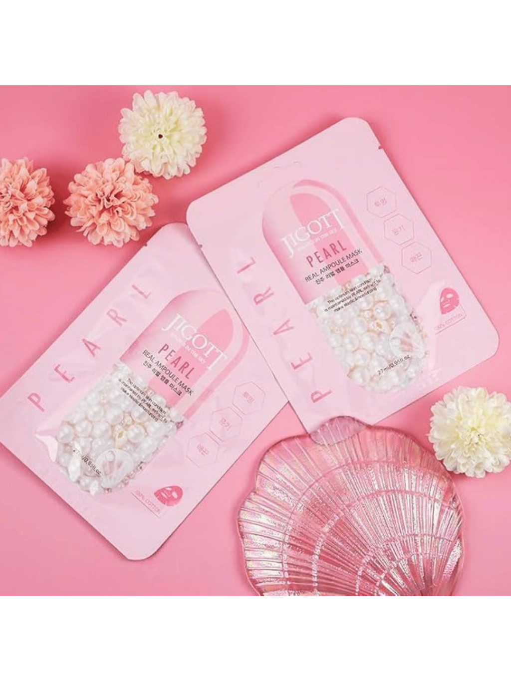 JIGOTT - Pearl Real Ampoule Mask - Rozjasňujúca plátenná maska s perlovým extraktom 27ml