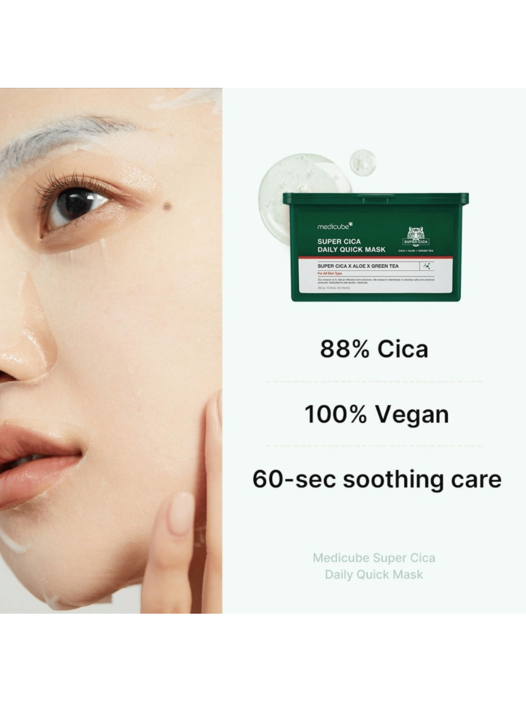 Rýchla SOS maska s Cica komplexom na upokojenie a intenzívnu hydratáciu v priebehu 1-5 minút - ideálna pre citlivú, začervenanú či aknóznu pleť.