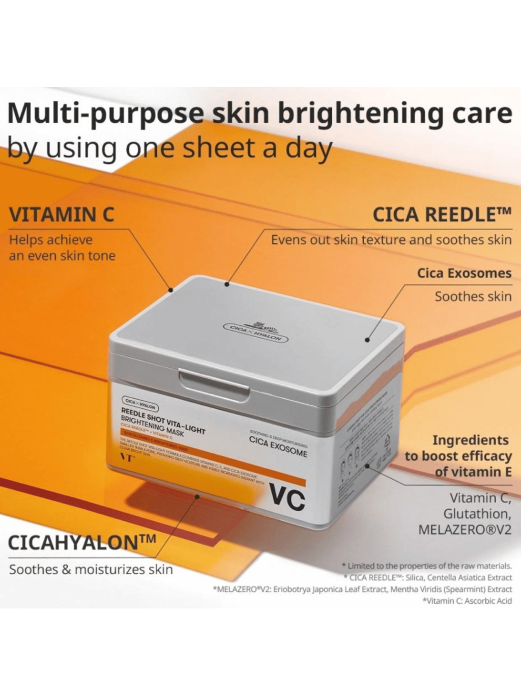 VT COSMETICS - Reedle Shot Vita-light Brightening Mask - Rozjasňujúce plátienkové masky s niacínamidom a vitamínom C 30 ks
