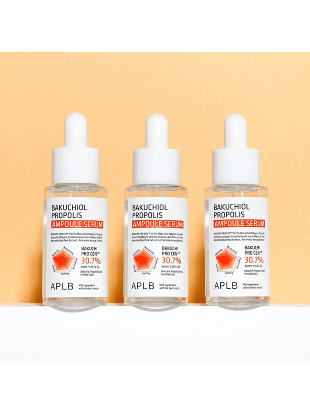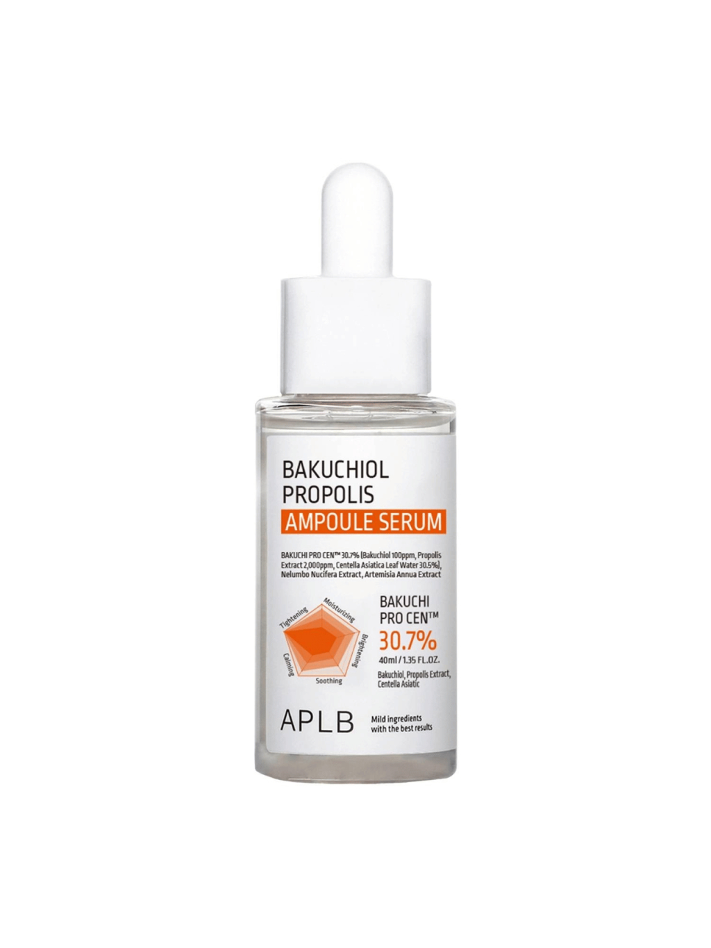 Ponúkni svojej pleti výnimočný zážitok s „Bakuchiol Propolis Ampoule Serum“ od APLB – sérum, ktoré rozohrá harmonickú symfóniu bakuchiolu a propolisu, obohatené o Centella asiatica, kolagén a antioxidantov. Sérum sa ľahko vstrebáva, využiješ ho večer aj ráno – keď poctivo nanesieš, podkladom je dôkladná očista pleti.