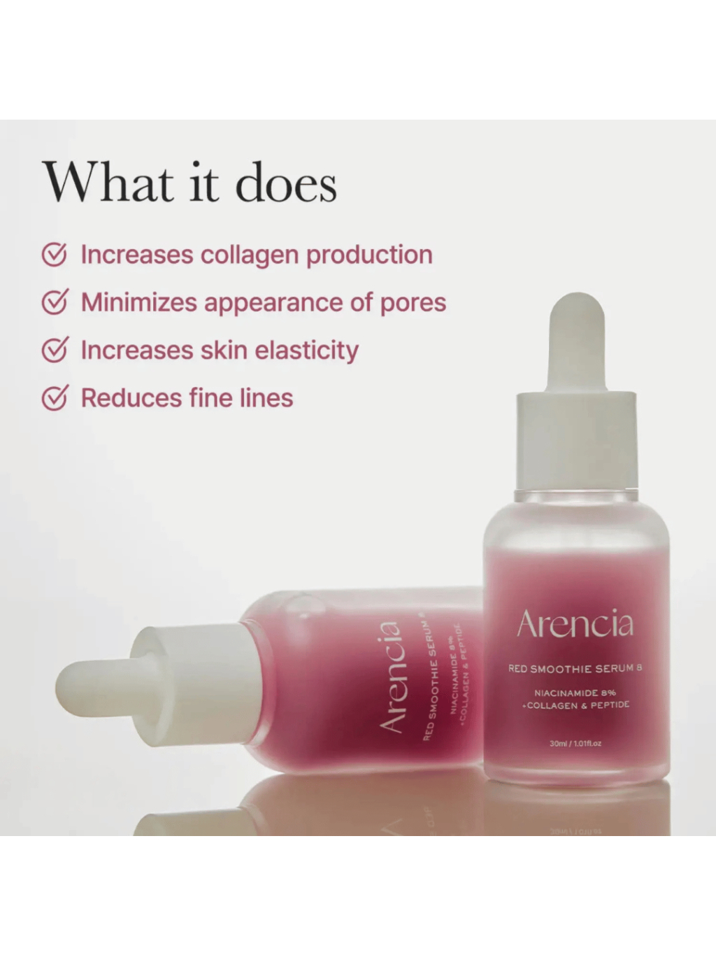ARENCIA - Fresh Red Smoothie Serum 8 - Liftingové rozjasňujúce sérum s 8% niacínamidom, kolagénom a peptidmi 30ml