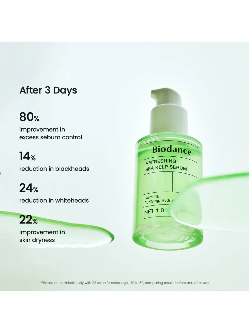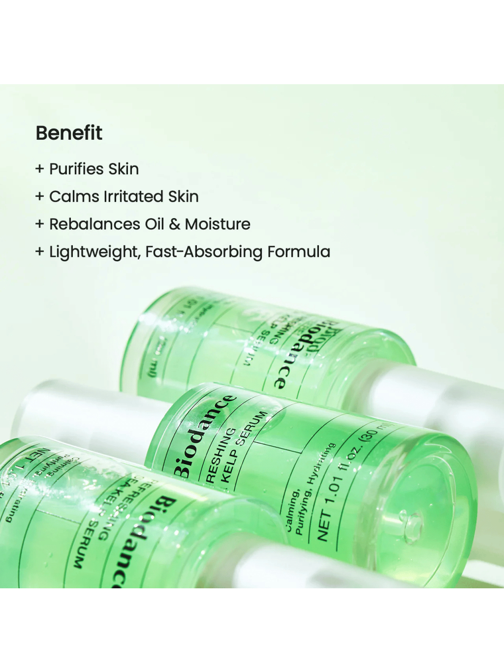 Ľahké sérum BIODANCE Refreshing Sea Kelp Serum pomáha upokojiť pleť, hydratovať ju a vyrovnať maz pre čistejší, svieži vzhľad.