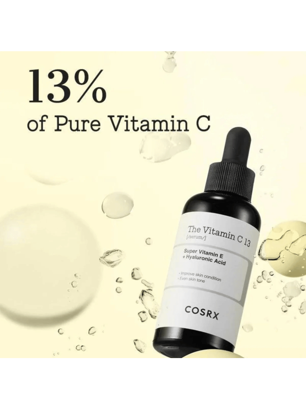 Ak tvoja pleť túži po rozjasnení, rovnomernom tóne a sviežom vzhľade, COSRX The Vitamin C 13 Serum sa stane tvojím každodenným elixírom. Toto intenzívne sérum s obsahom 13% čistej kyseliny askorbovej a stabilizovaného 3-O-Ethyl Ascorbic Acid cieli na pigmentové škvrny, mdlosť a predčasné starnutie pleti. Kofeín, niacínamid a výťažky z rastlín zabezpečujú upokojenie a vyhladenie, zatiaľ čo pantenol a kyselina hyalurónová zanechávajú pleť hydratovanú a sviežu. Ideálne na ranné aj večerné použitie.