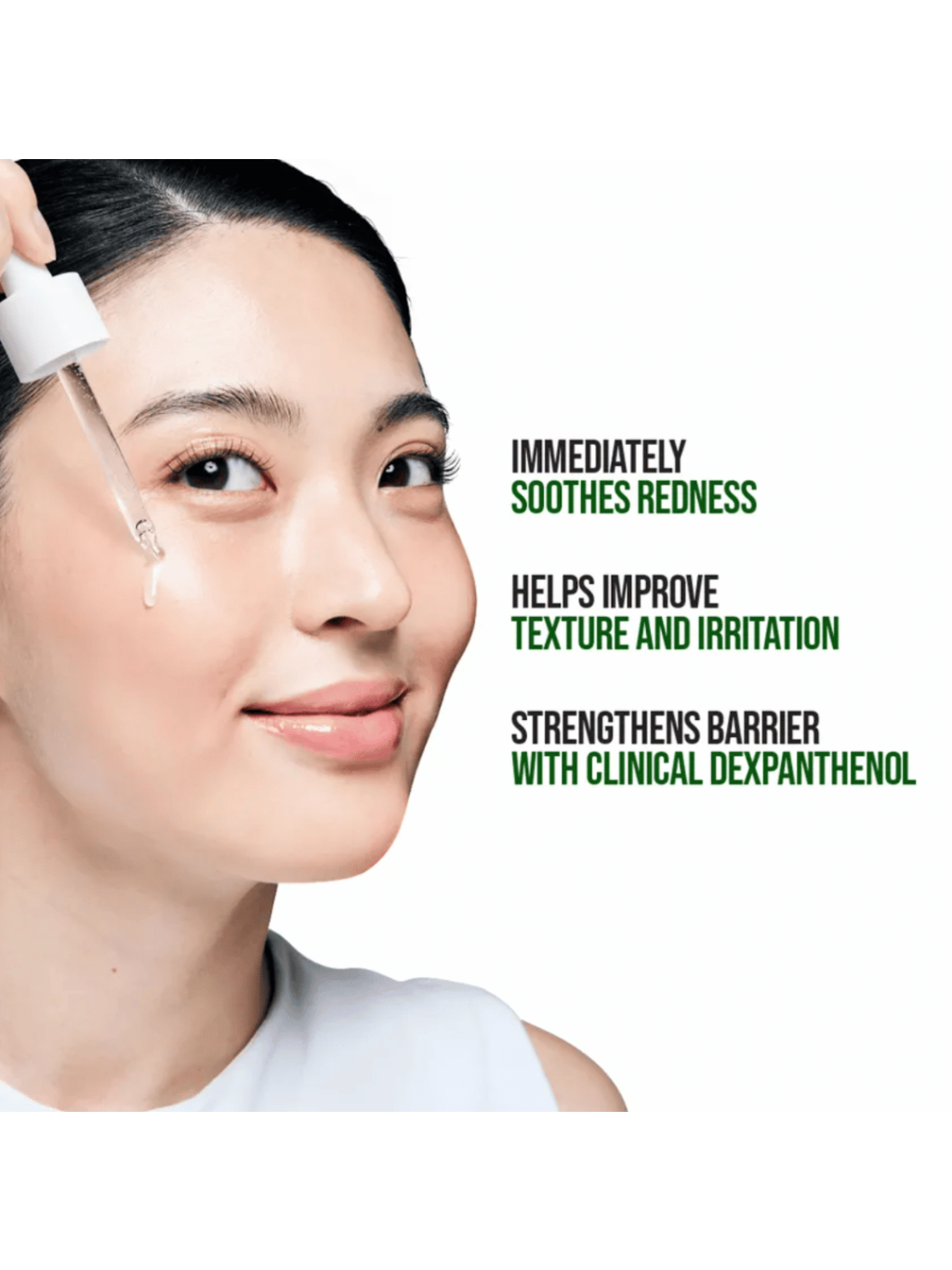 Intenzívne upokojujúce sérum s 5% pantenolom posilňuje kožnú bariéru a obnovuje rovnováhu pleti už po pár použitiach.