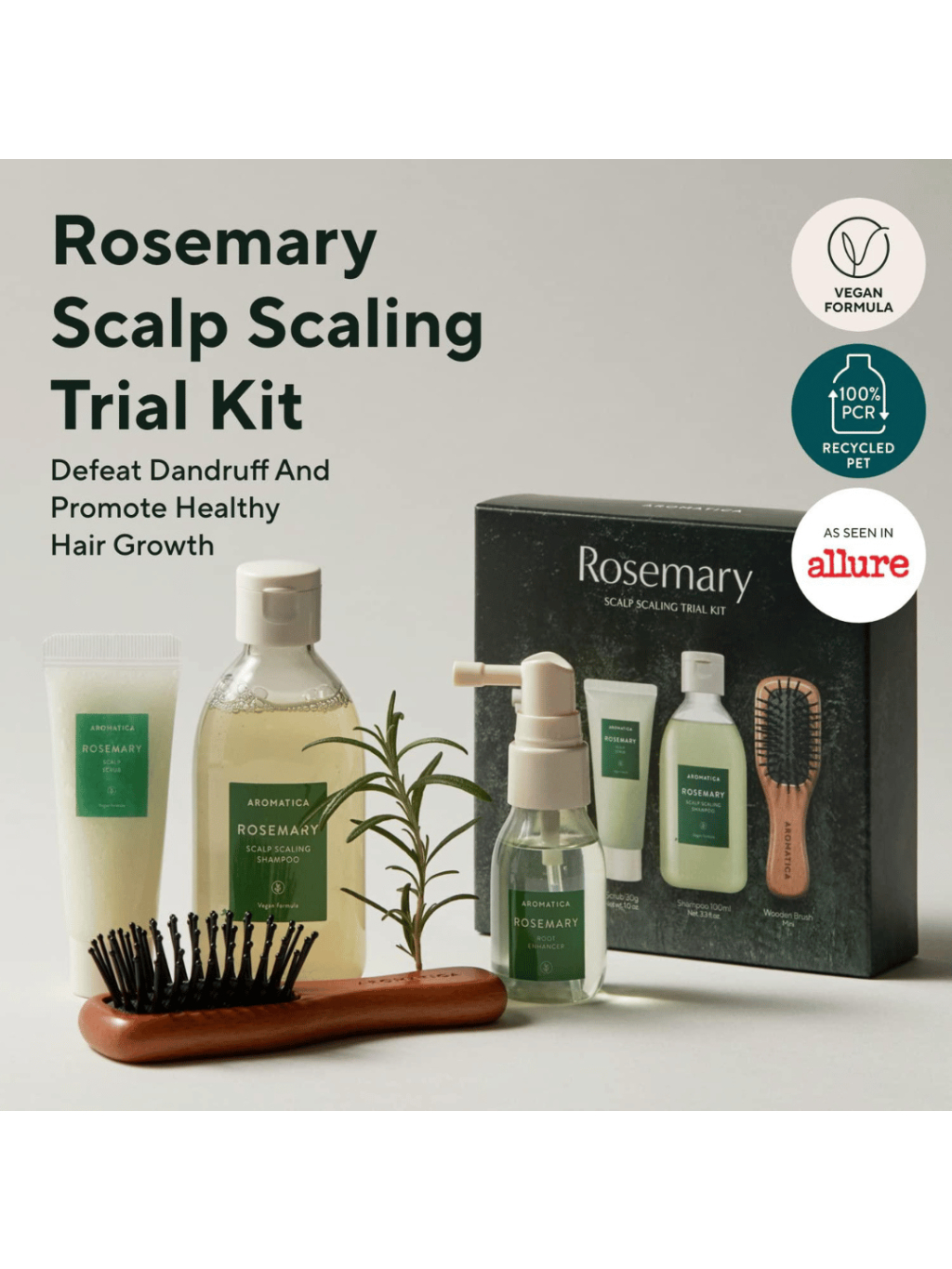 AROMATICA - Rosemary Scalp Scaling Trial Kit - Cestovná sada pre zdravú pokožku hlavy s rozmarínom 4 ks