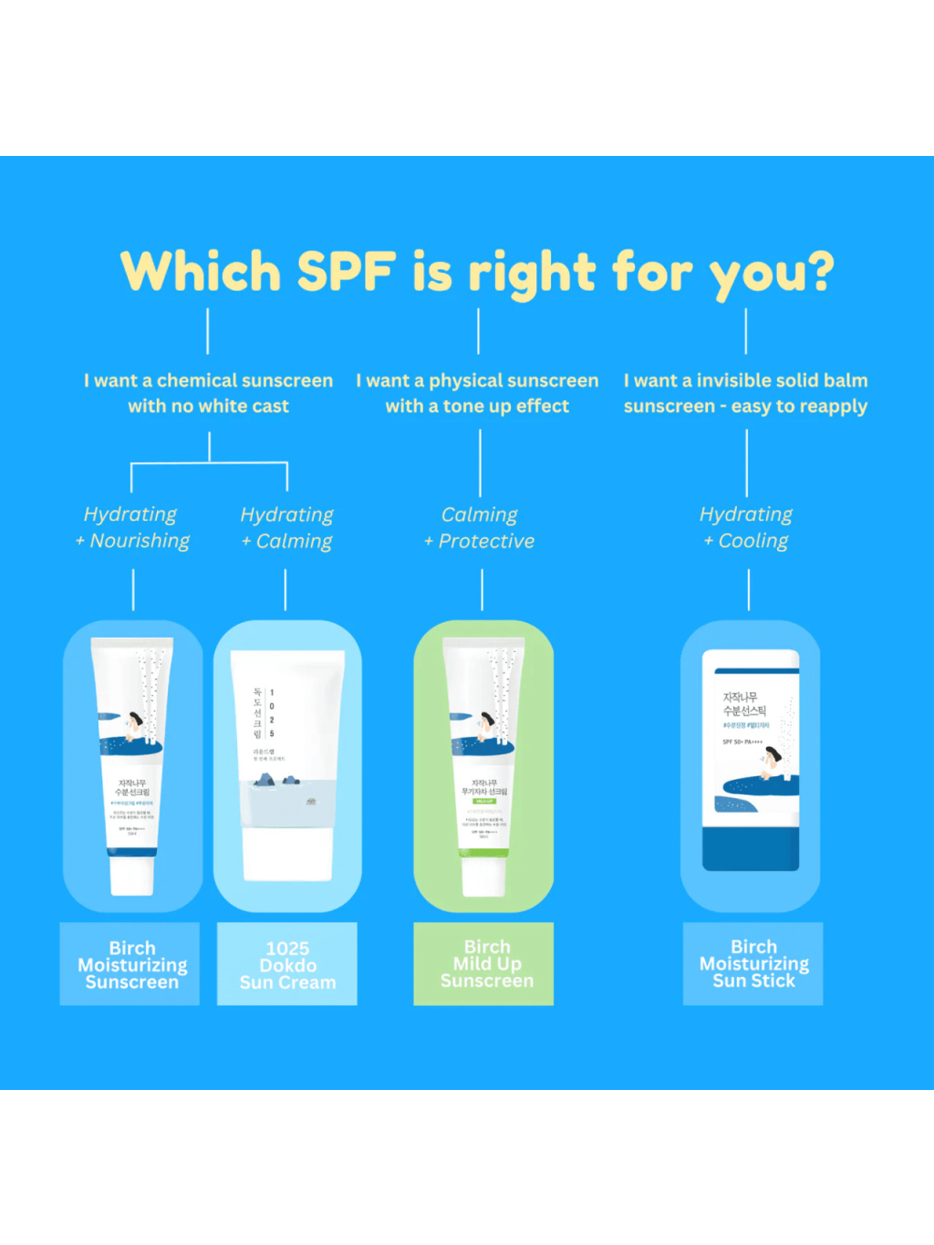 Predstav si opaľovací krém, ktorý nie len chráni pred slnkom, ale zároveň tvojou pleťou nežne pretečie ako brezová šťava v jarnom lese. ROUND LAB Moisture Mild-Up Suncreen s obsahom brezového extraktu, fermentovanými zložkami a minerálnym filtrom upokojí, hydratuje a rozjasní každý typ pleti – bez bieleho filmu, bez podráždenia. Stačí len pár kvapiek a tvoja pleť získa štít, ktorý necítiš, ale rozhodne vidíš.