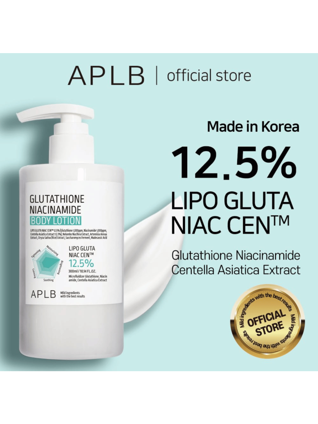 Zaži okamžité rozjasnenie a úľavu – APLB Glutathione Niacinamide Body Lotion v sebe spája silu antioxidantov, niacínamidu a obľúbenej cica na výživu aj upokojenie pokožky. Jeho jemná mliečna textúra sa dokonale vpije a necháva pleť hebkú, bez mastnoty.
