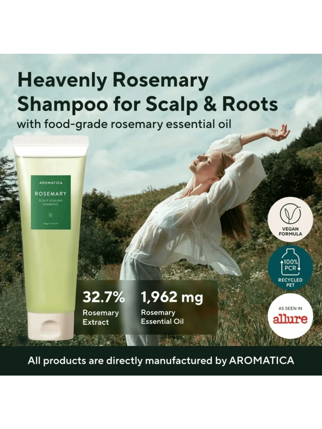 Keď sa pokožka hlavy cíti „upchatá“, vlasy sa vedia tváriť unavene už pár hodín po umytí. A presne vtedy prichádza na scénu AROMATICA Rosemary Scalp Scaling Shampoo - šampón, ktorý berie pokožku hlavy ako pleť a dáva jej poriadny reset. Vďaka kombinácii rozmarínu, bylinných extraktov a jemnej exfoliácie pomocou BHA (kyseliny salicylovej) pomáha uvoľniť nánosy mazu, odumretých buniek a nečistôt, ktoré môžu brzdiť pocit sviežosti pri korienkoch. Zamiluješ si ho aj pre ten „fresh“ efekt po umytí - pokožka hlavy pôsobí ľahšie, vlasy sú vzdušnejšie a ty máš chuť si ich stále chytať. Navyše v zložení nájdeš aj biotín, panthenol, kofeín, niacinamid a fermenty (Bifida a Lactobacillus), ktoré podporujú komfort pokožky a krásny vzhľad vlasov. Bonus? Značka pri tomto produkte komunikuje silicone-free a sulfate-free prístup, takže je to super voľba aj vtedy, keď chceš jemnejšie, každodenné čistenie bez zbytočnej záťaže. :contentReference[oaicite:0]{index=0}