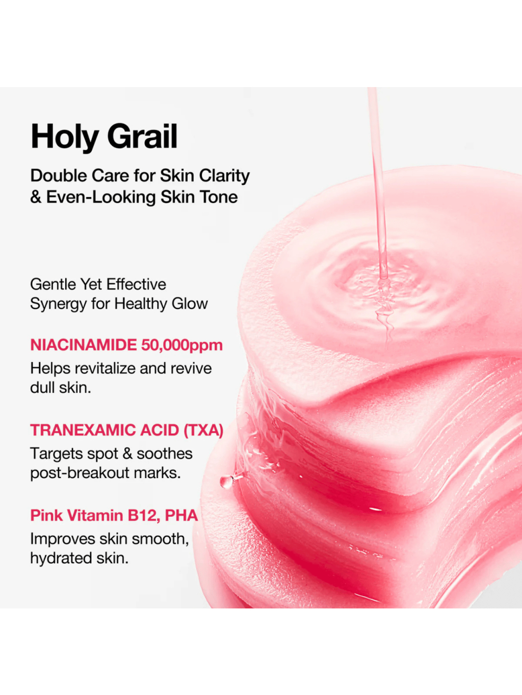 Zloženie: | Purified water, methylpropanediol, niacinamide (5%), butylene glycol, glycerin, 1,2-hexanediol, ethylhexylglycerin, adenosine, arginine, carbomer, disodium EDTA, cyanocobalamin, betaine salicylate, hydrolyzed sodium hyaluronate, madecassoside, tranexamic acid (4 ppm), gluconolactone, purslane extract, grape seed extract, sasanqua extract, rice germ ferment filtrate, oligopeptide-2, polyglyceryl-10 laurate, caprylyl glycol, copper tripeptide-1, hexapeptide-9, hexapeptide-11, palmitoyl pentapeptide-4, palmitoyl tripeptide-1, Tripeptide-1. |