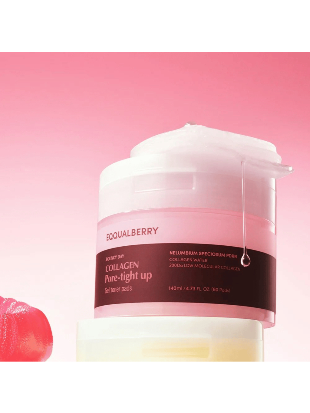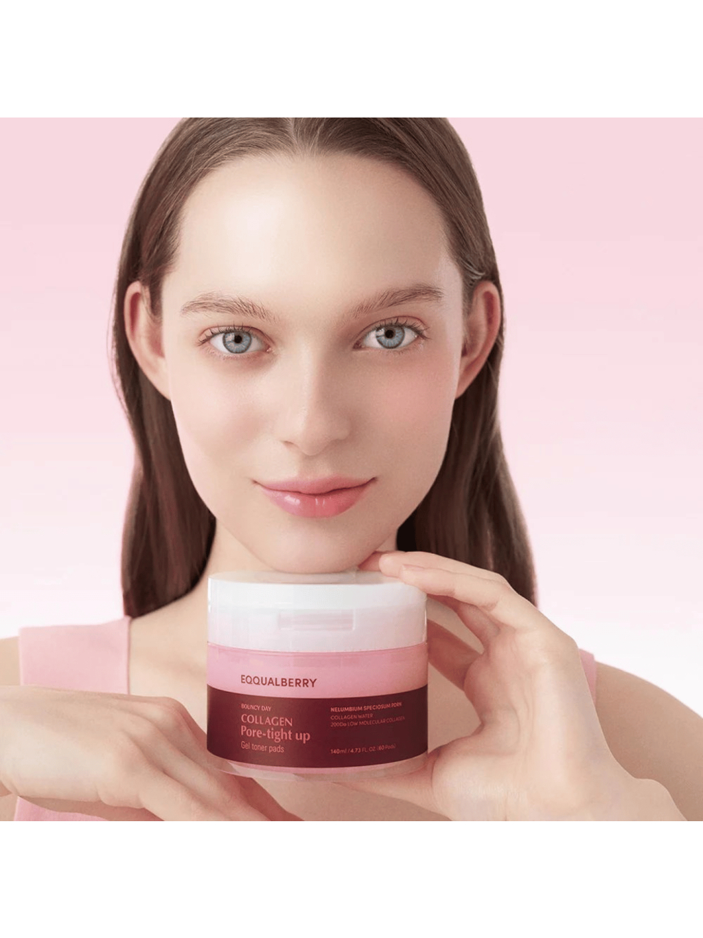 EQQUALBERRY Collagen Pore‑Tight Up Gel Toner Pads sú inovatívnym doplnkom tvojej rutiny. Obsahujú hydrolyzovaný kolagén, Niacinamid i Centella Asiatica – zložky proti starnutiu pleti aj prekážkam, ktoré ti pomôžu zjemniť póry, zosvetliť tón pleti a navrátiť jej pružnosť. Jemné vankúšiky nasýtené gélovou esenciou sú pripravené revitalizovať tvoju pleť po odličovaní.