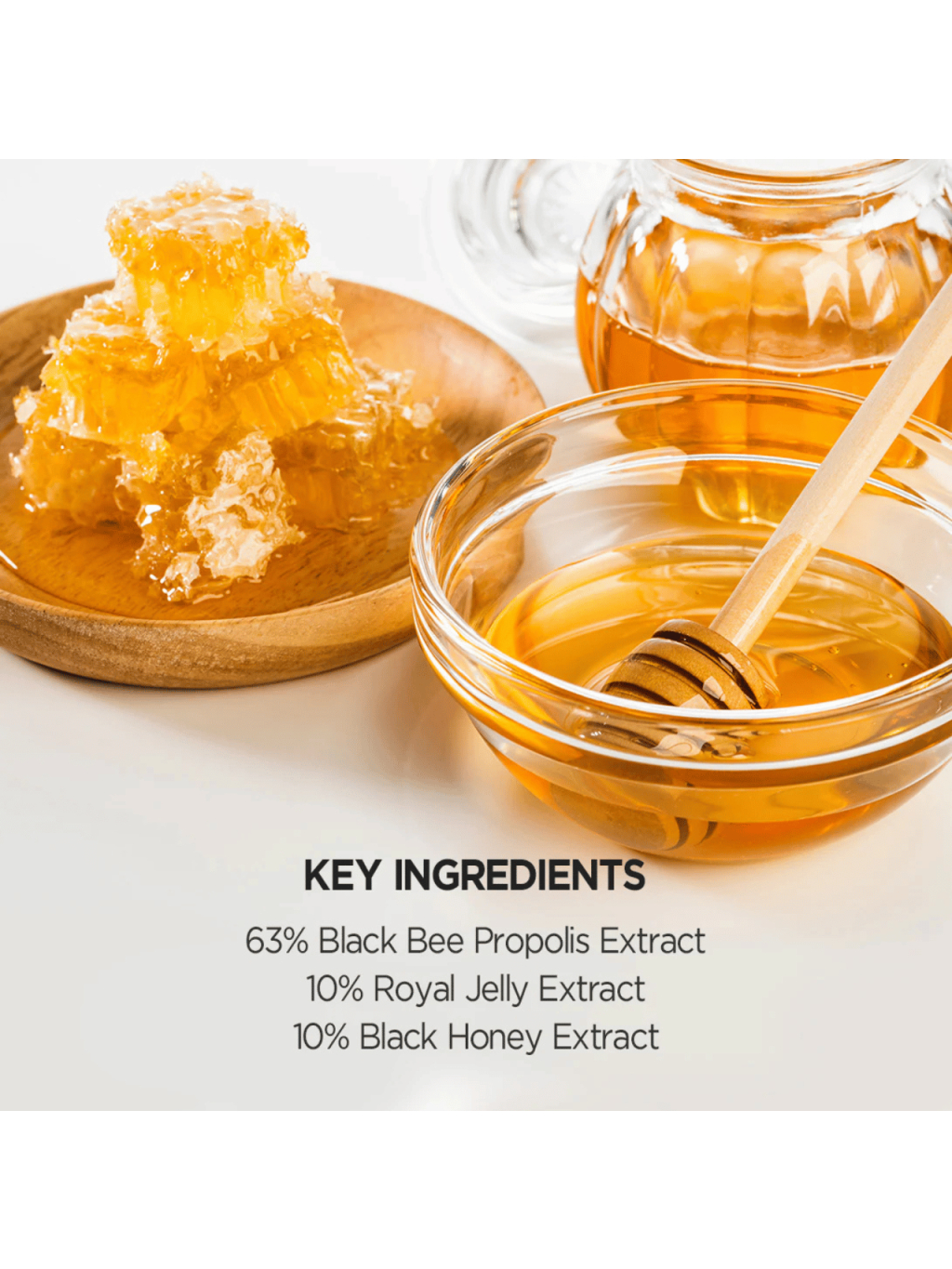 - ✨ Propolis Extract (63 %) – silný antioxidant s antibakteriálnymi účinkami, pomáha spevniť a ochrániť pleť