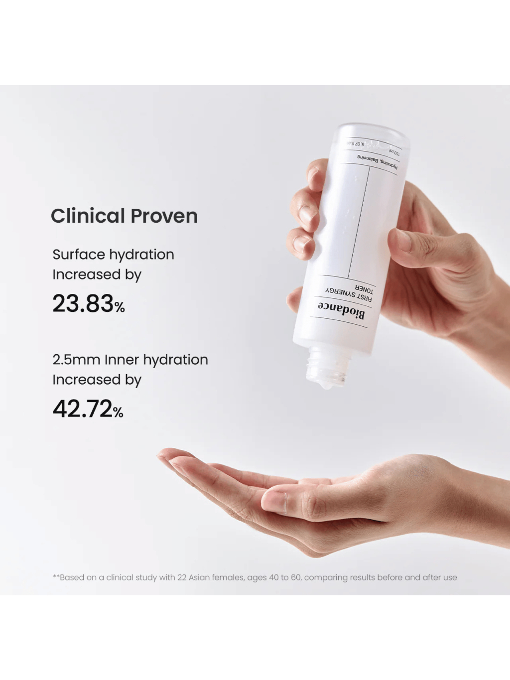 Predstav si tonikum, ktoré sa správa ako sérum a už po prvých kvapkách cítiš, ako pleť doslova pije. BIODANCE First Synergy Toner je tvoj nový hydratačný základ, ktorý pripraví pleť na ďalšie kroky a zanechá ju okamžite jemnejšiu a pružnejšiu. Vysoký podiel hydratačných zložiek, vrátane viacerých foriem kyseliny hyalurónovej a betaínu, sa stará o dlhodobé doplnenie vody v pleti, zatiaľ čo panthenol a botanické extrakty prinášajú úľavu pri pnutí či začervenaní. Konzistencia je ľahká, mliečne priesvitná a príjemne klzká - pri nanášaní máš pocit, že používaš sérum, no vstrebáva sa do pár sekúnd bez lepivosti. Zloženie je bez alkoholu a bez parfumácie, takže sedí aj citlivej pleti. O upokojenie sa stará Cynanchum atratum extract a Althaea rosea flower extract, o jemné zvláčnenie a pružnosť Hydrolyzed glycosaminoglycans spolu s komplexom hyalurónových látok od Sodium Hyaluronate po Hydrolyzed Hyaluronic Acid. Pridaj k tomu antioxidačnú ochranu Tocopherolu a minerálne bohatstvo Chondrus crispus extract a výsledok je pleť, ktorá vyzerá sviežo, je mäkká na dotyk a lepšie prijíma sérum aj krém. Ak hľadáš smart toner na ráno aj večer, ktorý sa dá vrstviť, krásne spolupracuje s aktívami a robí okamžitý rozdiel v komforte pokožky, First Synergy Toner je presne pre teba.