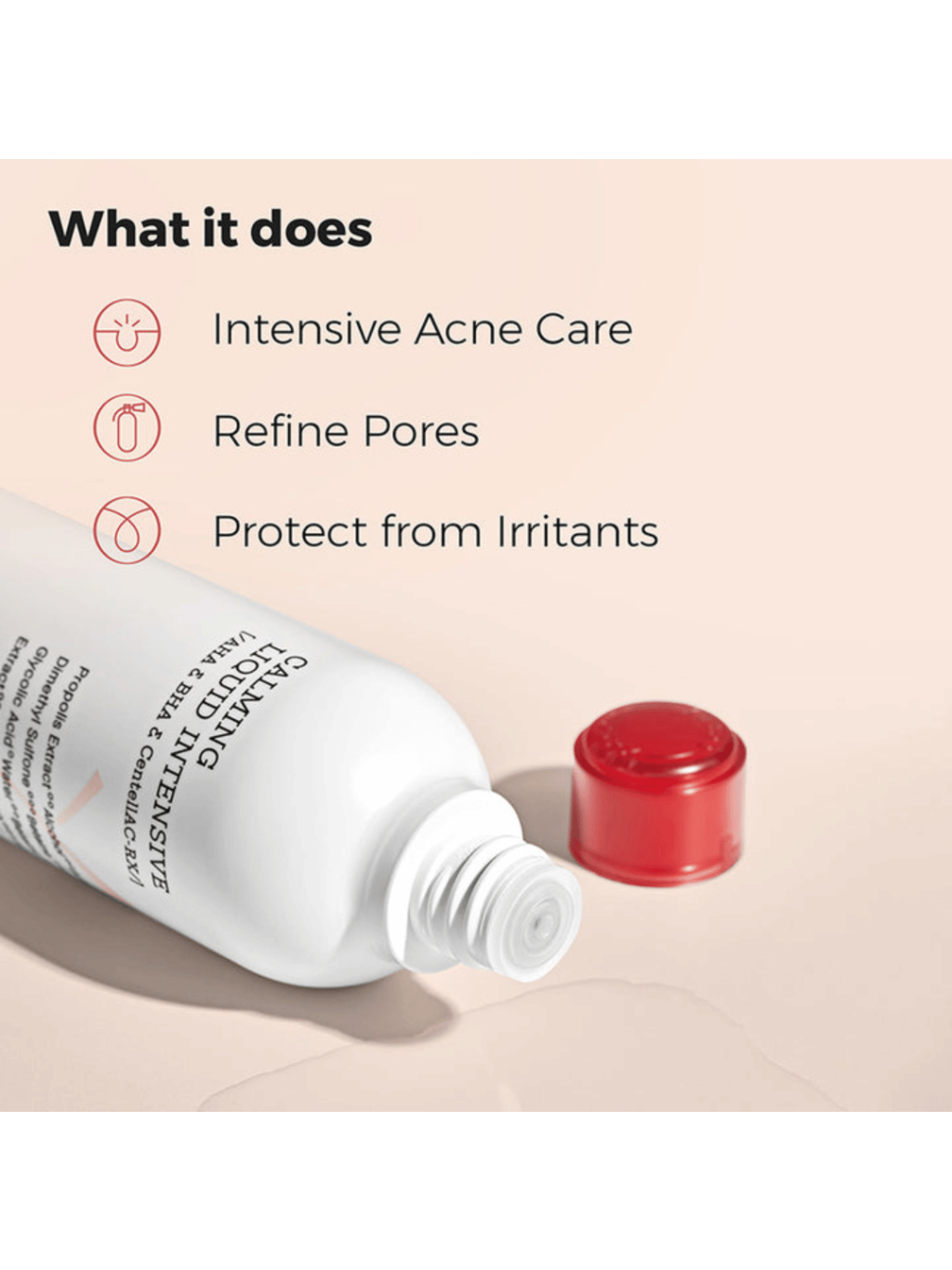 AC Collection Calming Liquid Intensive je tvoje SOS riešenie, keď sa pleť ozve nedokonalosťami a začervenaním. Predstav si ľahkú, sviežu tekutinu, ktorá sa správa ako toner, no pracuje s intenzitou cielenej starostlivosti: jemne uvoľňuje póry, urýchľuje regeneráciu a pomáha upokojiť aktívne vyrážky. V jeho jadre je propolis extract, ktorý je známy svojimi upokojujúcimi a hydratačnými účinkami, k tomu AHA a BHA kyseliny pre hladší povrch pleti a čistejšie póry a napokon Zinc PCA pre lepšiu kontrolu mazu. Formulu dopĺňa ikonická Centella asiatica v podobe aktívnych frakcií asiaticoside, asiatic acid, madecassic acid a podporný panthenol s allantoinom pre komfort citlivej, aknóznej pleti. Vďaka tejto vyváženej kombinácii sa produkt rýchlo stane obľúbencom tvojej rutiny - je ľahký, nelepivý a zanecháva pleť sviežu a čistú bez pocitu vysušenia. COSRX vyvinul túto intenzívnu tekutinu ako súčasť línie AC Collection pre pleť so sklonom k akné, aby si mala účinný, no šetrný krok po čistení, ktorý pripravenú pleť zjemní a skľudní. Ak hľadáš multitasker, ktorý exfoliuje, upokojuje a hydratuje v jednom, AC Collection Calming Liquid Intensive presne cieli na tieto potreby a je ideálny na pravidelné používanie aj lokálne na problémové zóny. Pre ženy, ktoré chcú spojiť starostlivosť o akné s jemnosťou a komfortom, je to láska na prvé použitie.